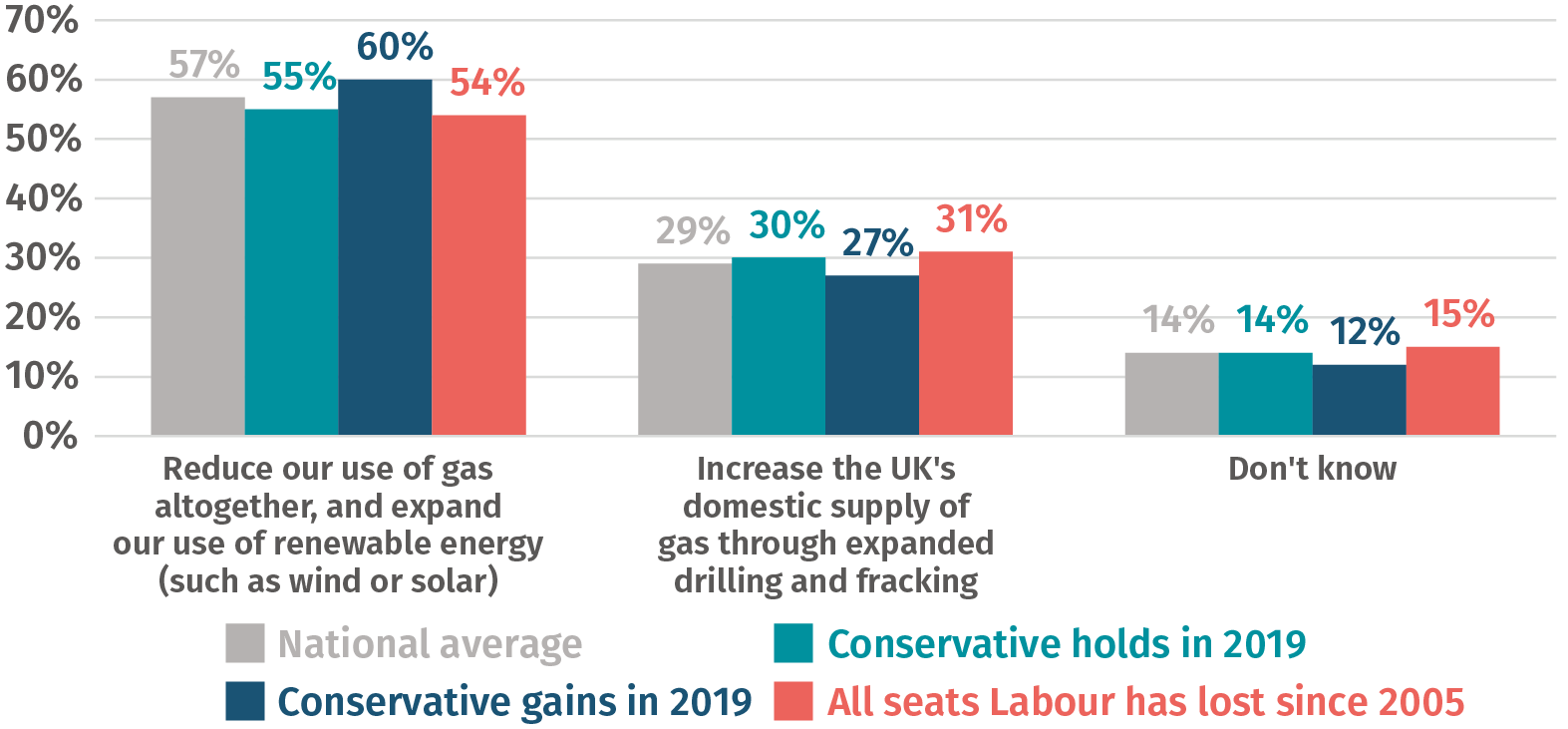 Figure 4: Clean energy is seen as the best means to reduce UK reliance on Russian gas by a majority across all voter groups