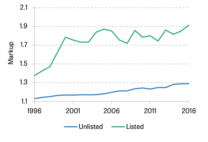 Figure 1: For decades British firms have been steadily increasing price mark-ups