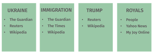 Figure 1: Sources used by ChatGPT in response to questions about BBC reporting on popular news topics