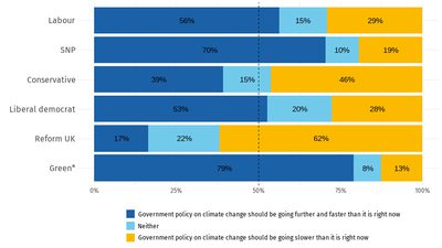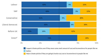 Figure 3. Most supporters of all parties other than Reform UK would support policies to tackle climate change even if they led to cost and inconvenience