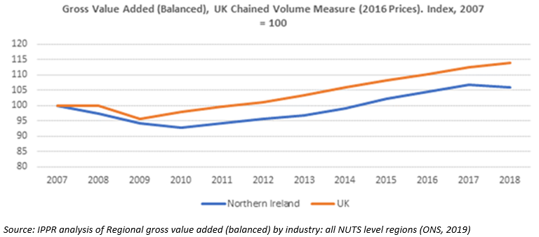 This means that the gap has been widening between Northern Ireland the rest of the UK economy.