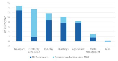 Figure 1. Emissions reductions since the Climate Change (Scotland) 2009 Act have been deep in the electricity sector, but shallow across other sectors