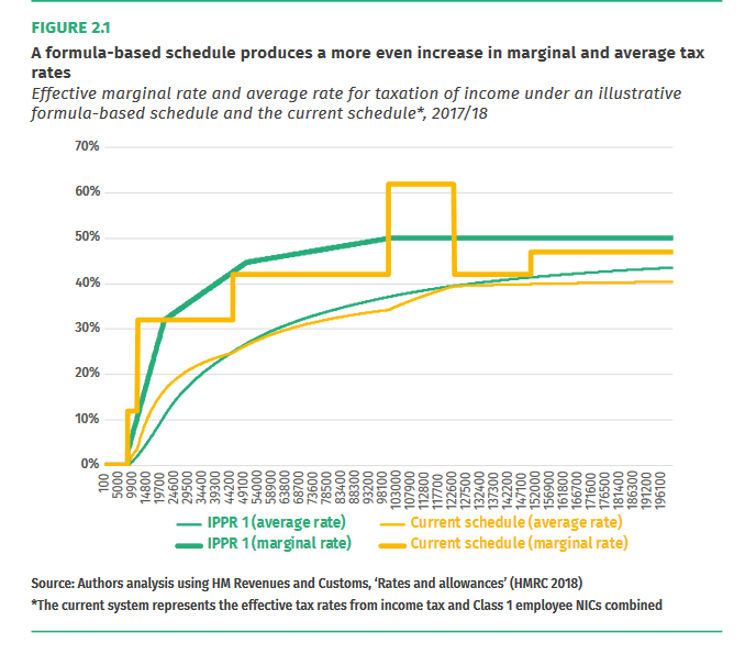 Second, the existing system of marginal tax bands would be replaced by a formula, such that everyone’s marginal tax rate would depend on their own precise level of income.