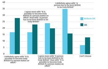 Share of people who believe “It is possible to become truly British if a person makes an effort” compared to “A person has to be born British to be truly British”