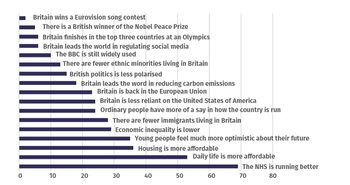 But nationalism has always been capable of progressive and reactionary expressions: it can look backwards to pre-modern identities or forwards to democratising and egalitarian goals. When asked what would make you proud of the country in a decade’s time, Britons’ overwhelmingly choose broad-based, progressive objectives like healthcare, affordable living and lower economic inequality over ethnic solidarities and reactionary expressions (figure 5).