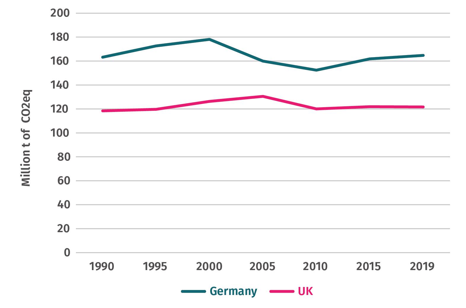 Figure 1: Transport emissions in Germany and the UK have barely changed in almost 30 years