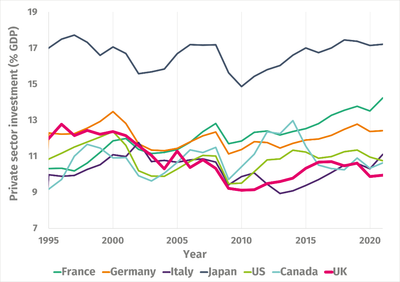 Figure 2 – The UK has lower private sector investment than the rest of the G7 and is falling behind