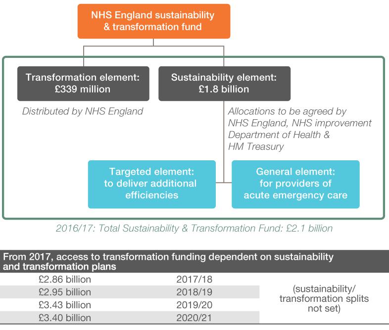Some funding is already allocated for ‘transformation’ (making change happen) as part of the STP process, but this is dwarfed by funding for ‘sustainability’ (plugging deficits) and is likely to shrink further as the immediate pressures on the service grow over the next few years (see figure 3).