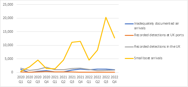 Fig 1: Detected attempts to enter the UK irregularly (2020 – 2022)