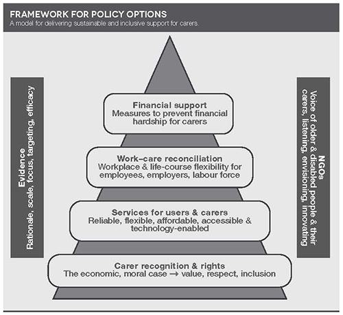 Around the world, carers can aspire to access public policy outcomes of four main types. In the UK, elements of these were achieved, incrementally, and through political pressure, campaigning and evidence-gathering, in the following order.