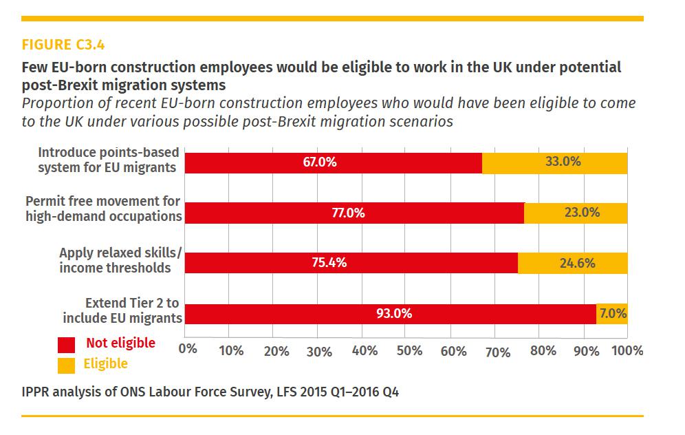 The construction industry would be severely impacted by ending freedom of movement after Brexit a new report published today by IPPR, the progressive policy think tank. The report shows that industry has become increasingly reliant on EU migrants in order to meet skills and labour shortages.