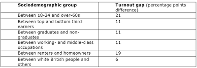 “The widening turnout gaps between renters and homeowners, and graduates and non-graduates, highlight a glaring blind spot in tackling political inequality.