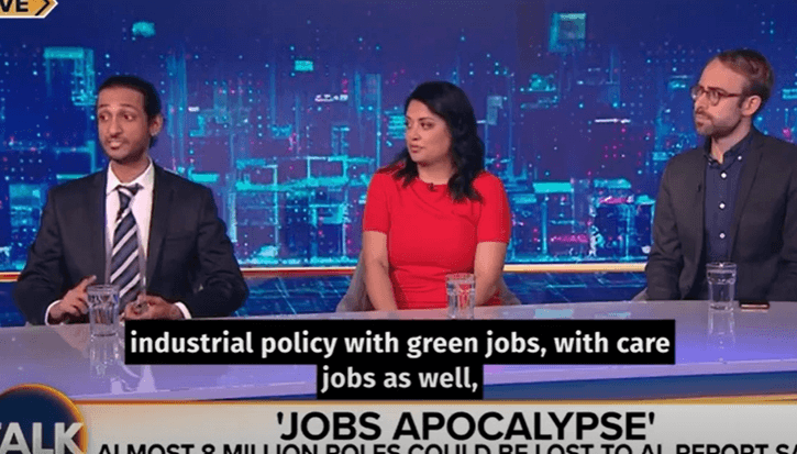 IPPR's Bhargav Srinivasa Desikan on TalkTV discussing his new report on the impact of generative AI on the UK labour market.